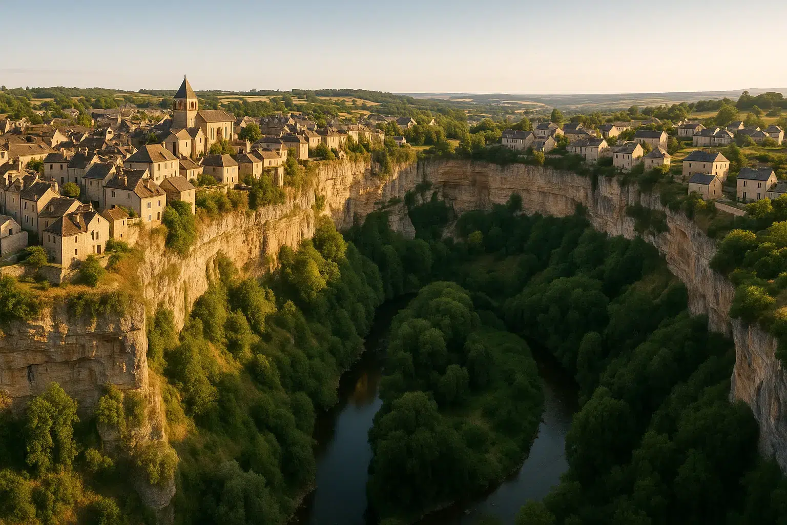 Le Trou de Bozouls, ce canyon naturel en forme de fer à cheval creusé par la Dourdou, est un site unique en Europe. D’une profondeur de 100 mètres et d’un diamètre de 400 mètres, il s’offre à la curiosité des randonneurs grâce à ses sentiers aménagés et sa tyrolienne. Le village, perché sur l’éperon rocheux central, offre des vues imprenables sur cette merveille géologique vieille de 200 millions d’années.